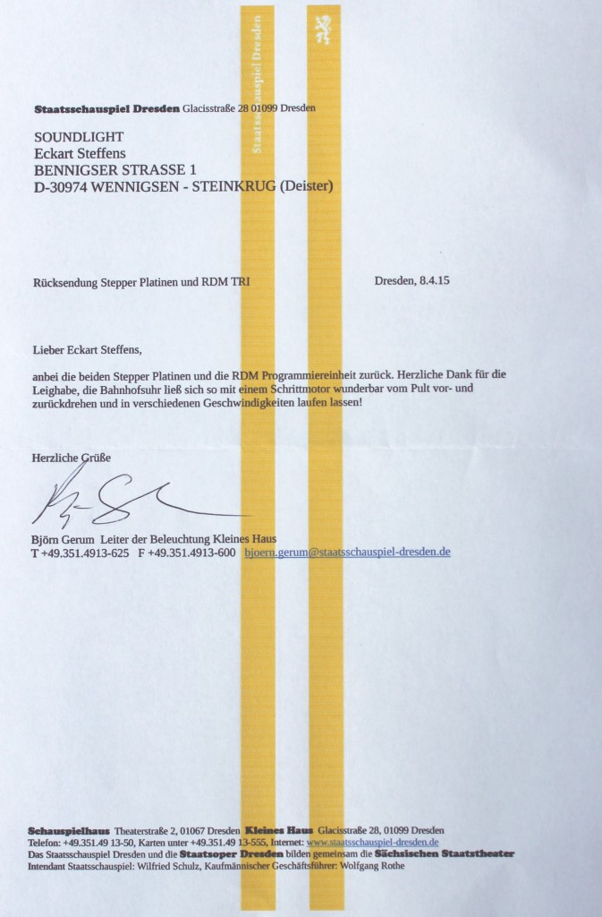 Vielen Dank für das nette Dankschreiben aus dem Theater!