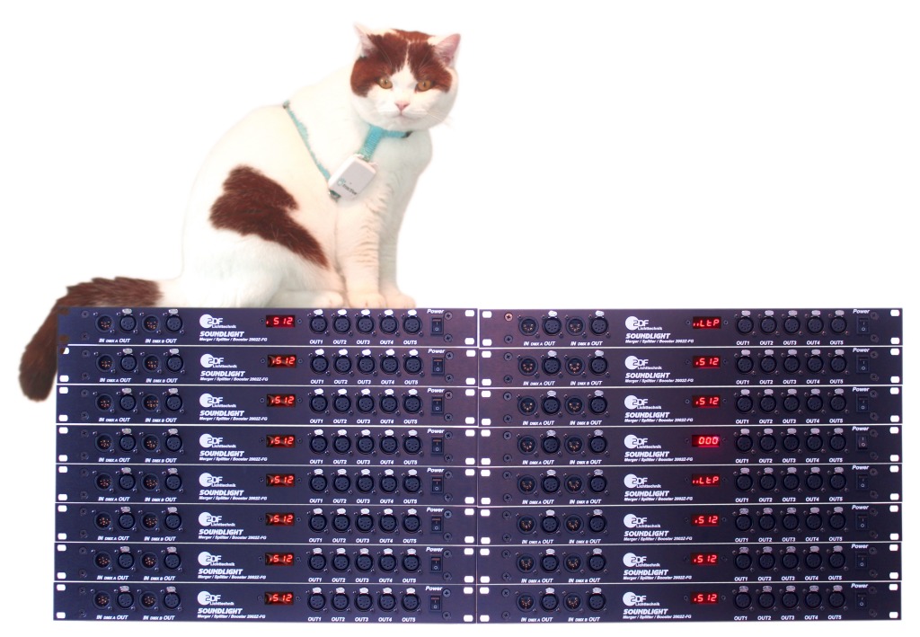 Ohne Licht läuft im Fernsehen ja nichts. Damit sie immer bestens im Bilde sind, verfügt das ZDF über eine umfangreiche Lichttechnik powered by SOUNDLIGHT, denn in jedem ZDF-Lichtwagen findet sich nunmehr ein sog. Merger-Booster 2002Z-FG, der nach ZDF-Anforderungen entwickelt und gebaut wird. Damit wird bei Ausfall eines Steuerpultes ein verzögerungsfreier Übergang auf Havariesysteme bei gleichzeitiger Letztwerthaltung gewährleistet - kurz: auch in einem solchen Fall steht niemand im Dunkeln. Viel Leistung für wenig Mäuse - da staunt selbst unser Firmenkater Zampano.