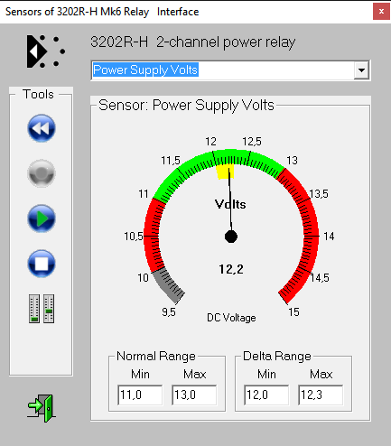 Der Spannungssensor dient zur Überwachung der Betriebsspannung. Er verfügt gleichzeitig über die Möglichkeit des (rückstellbaren) Langzeit-Monitorings (Min/Max).