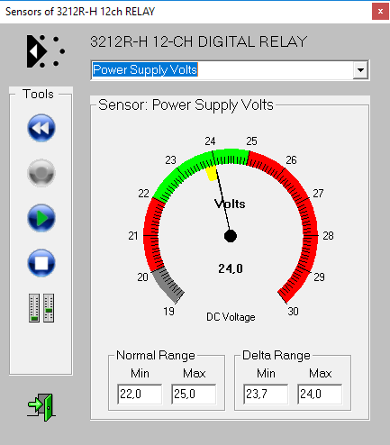 The voltage sensor monitors the internal power supply and provides a (resettable) recording (Min/Max).