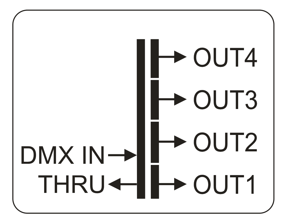 Though the DMX protocol supports 512 control channels, the line load is limited to a maximum of 32 connected devices (to be safe, use about 24 devices per link). This is due to the limited current source/sink capabilites of the interface driver chips, and refers to the EIA/TIA 485 standard, upon which the DMX standard is based (DMX512 is the "Communication Language", while RS-485 is the "Hardware Description" of the control bus). When more than 32 devices are to be connected to a single DMX controller, a DMX spitter must be introduced to generate more branches- each can then be loaded with a maximum of up to 32 devices. Another benefit of introducing a DMX splitter is the optical isolation of data input and data output. This provides electrical isolation between input and output adding additional system safety and reliability. Compromising signal quality on one branch will not affect other branches. Please note, that many low cost DMX splitters available on the market do not provide electrical isolation nor port protection. |