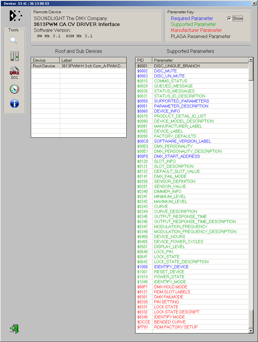 This is a list of all RDM commands for the 3614PWM-H (to enlarge simply click the image). All functions can be called using a standard RDM controller. When looking for a versatile RDM contraller, pls check the JESE GET/SET Software.