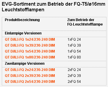 EVG-AUSWAHL T5 Elektronische Vorschaltgeräte für Leuchtstofflampen sind von verschiedenen Herstellern verfügbar. Sie müssen zum verwendeten Leuchtmittel passen; hier eine Auswahl für Standard T5 Röhren. |