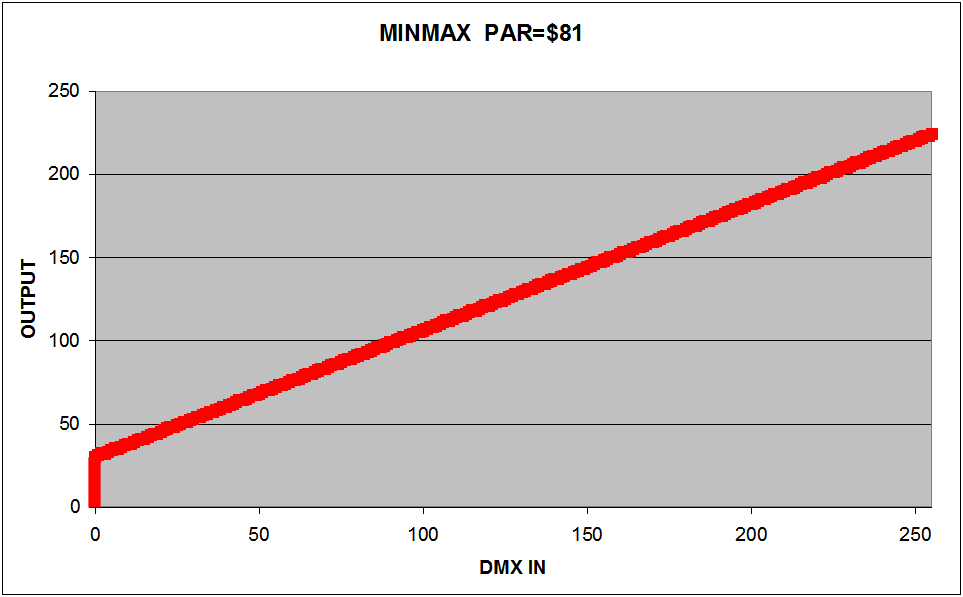 - PARM=1: no Hold, alle Ausgänge gehen auf 100% (ON: Architectural Lighting)