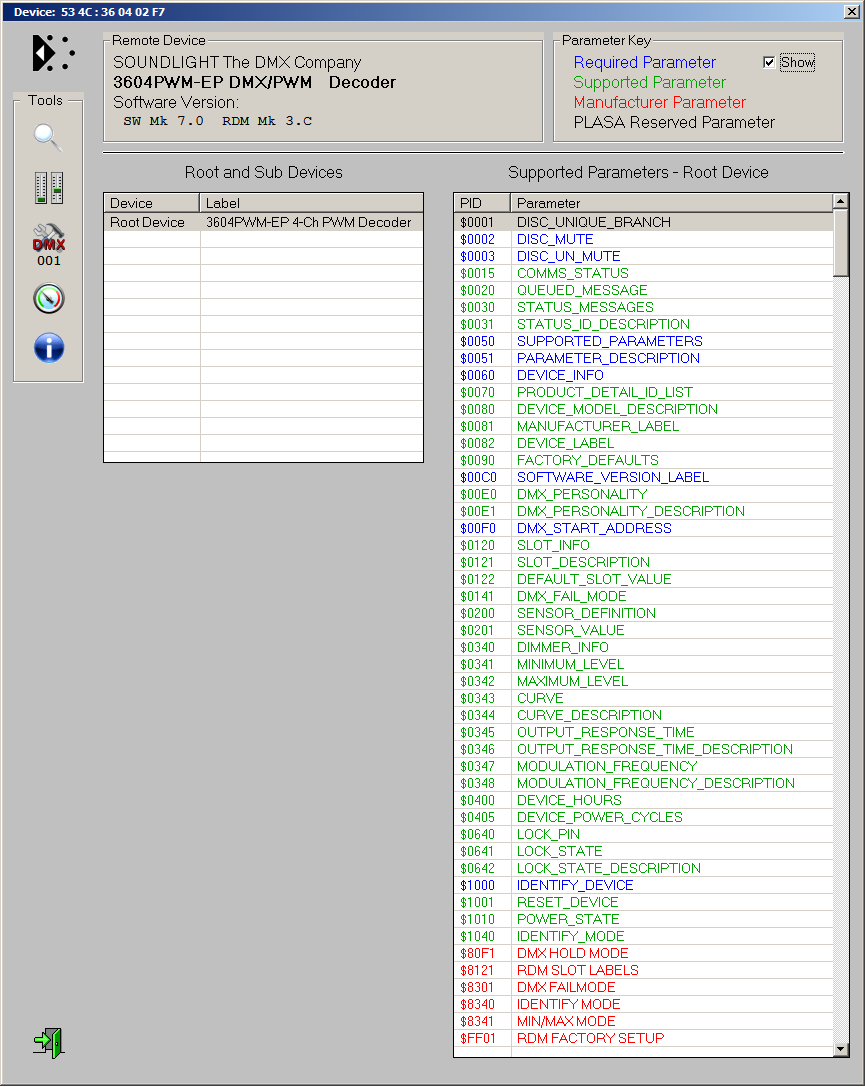 This is the list of all RDM functions available with the decoder 3604PWM-EP.
