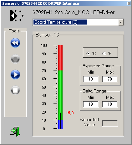Integrierte Sensoren berichten über Versorgungsspannung und Gerätetemperatur. Außerdem können Betriebsstunden und