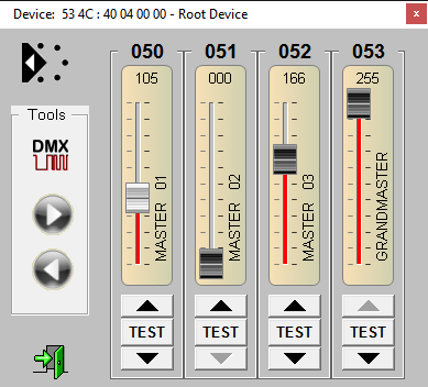 FADER PANEL In Personality 5 arbeitet der 4004A-H als 3 in 1 HTP Merger. Dabei kann jeder Dateneingang einzeln, und zusätzlich der Gesamtausgang in der Intensität gesteuert werden. Aufgenommen mit JESE GET/SET RDM CONTROLLER |