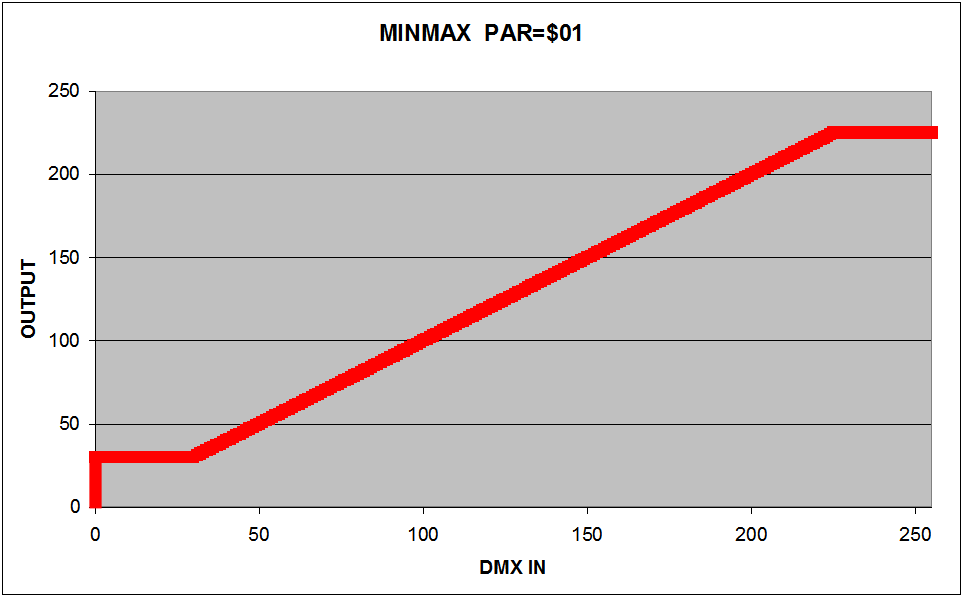 - PARM=1: no Hold, alle Ausgänge gehen auf 100% (ON: Architectural Lighting)